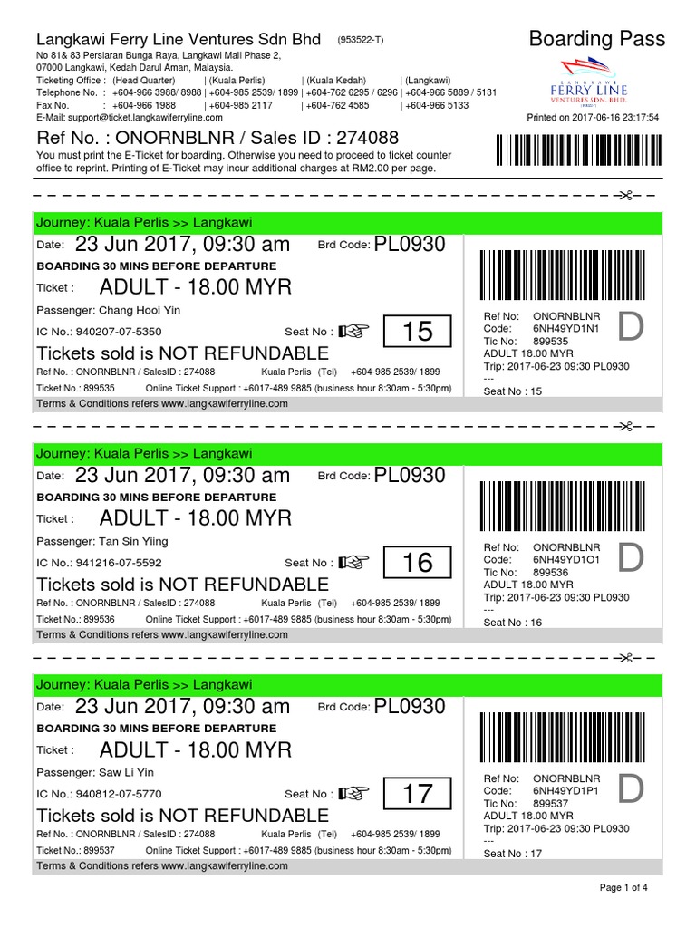 Ticket Ferry Langkawi Malaysia Where You Now Jordi